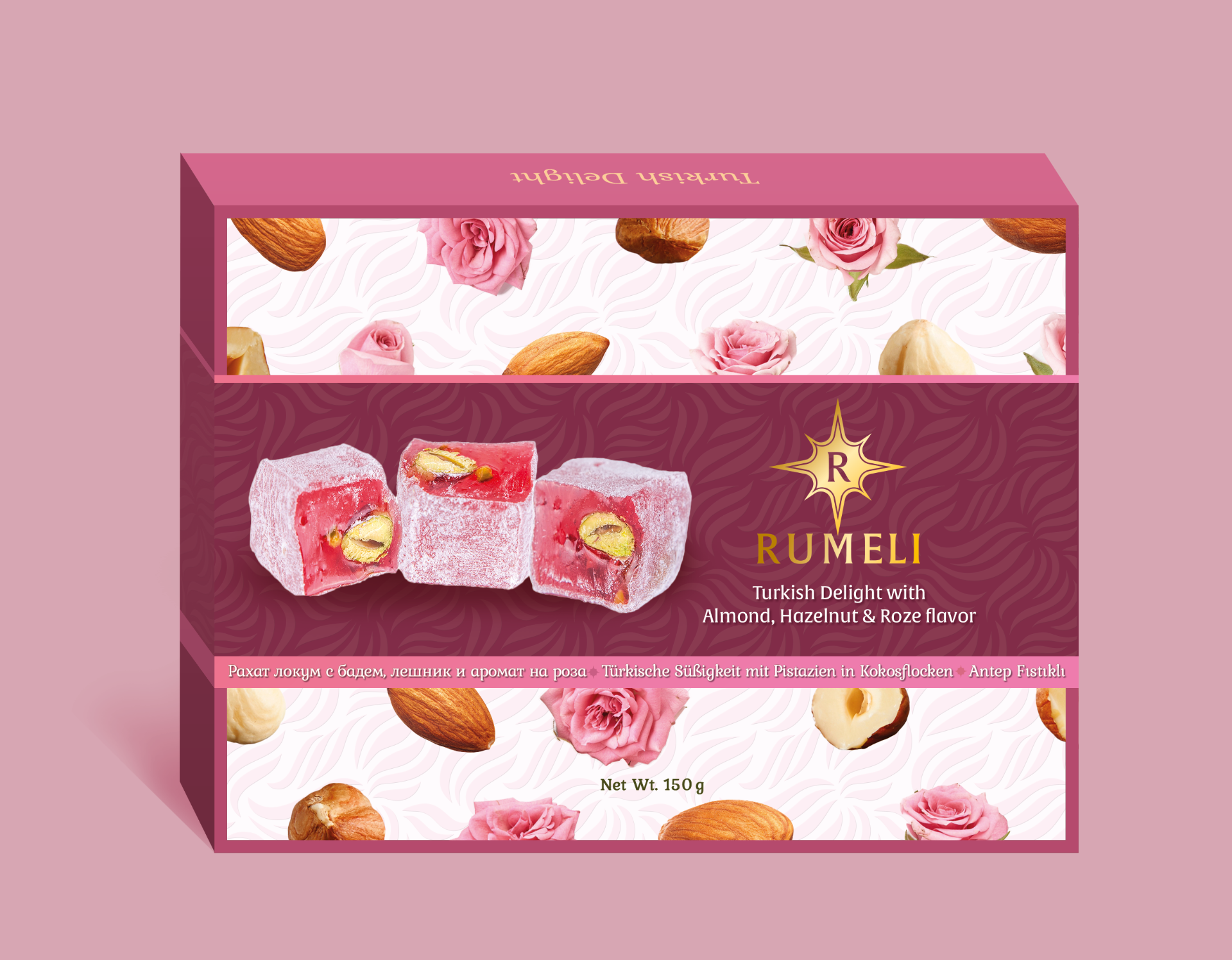 Rahat Turkish delight with rose, hazelnuts and almonds 150g.