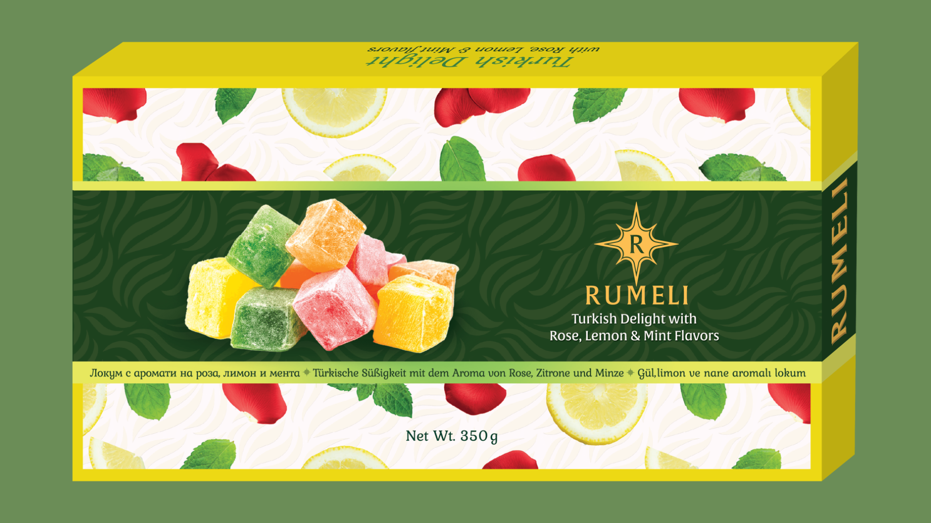 Rahat Lokum with rose, mint, lemon flavor 350g.