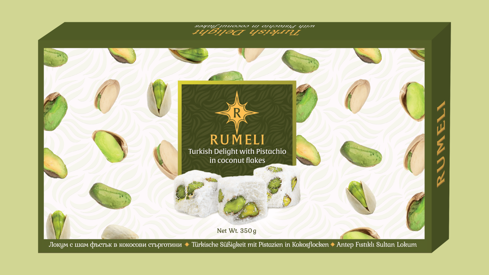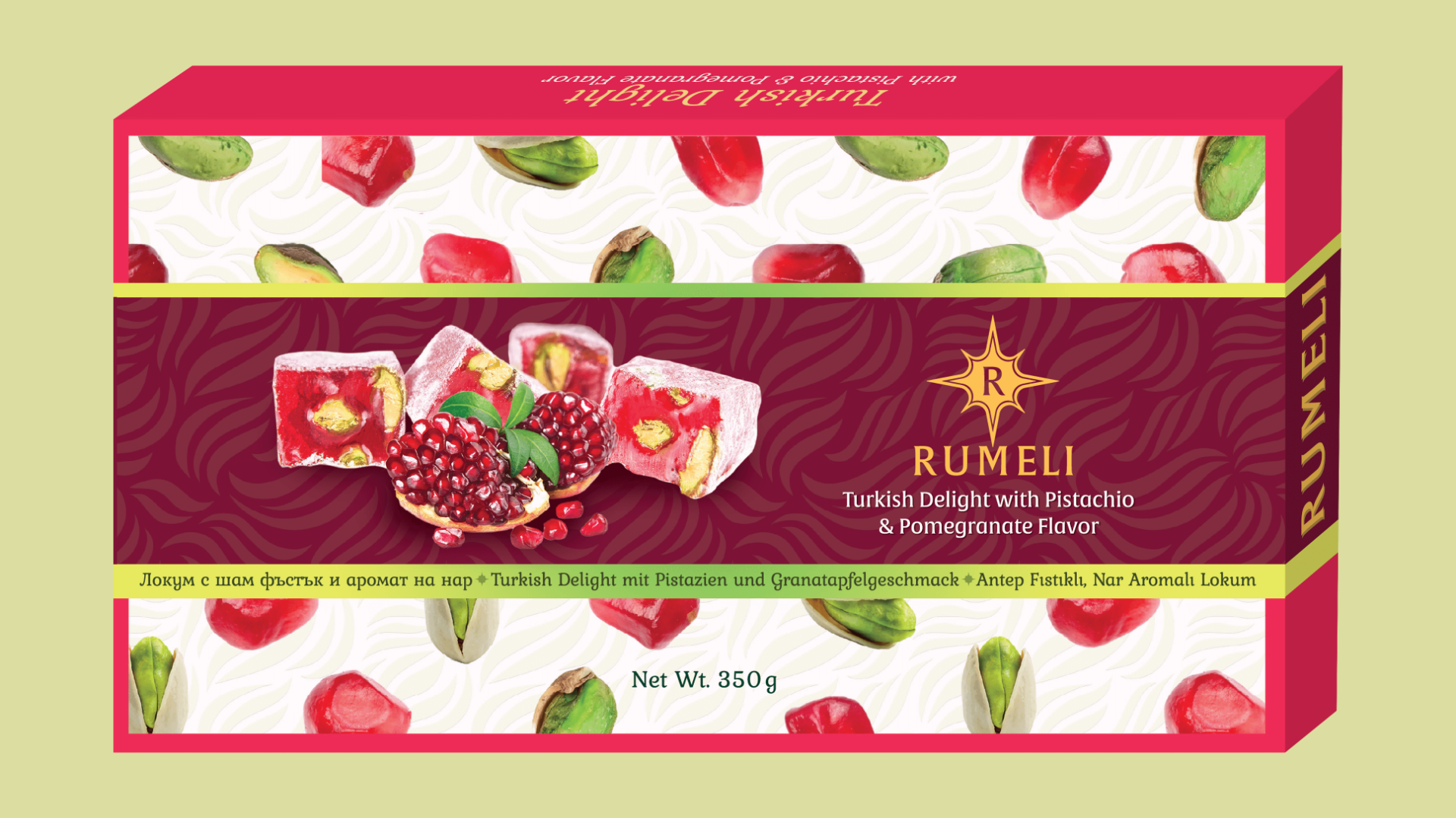 Turkish delight with pistachio, honey and pomegranate flavor, covered with kadaif and pistachio powder – 350 gExclusive collection