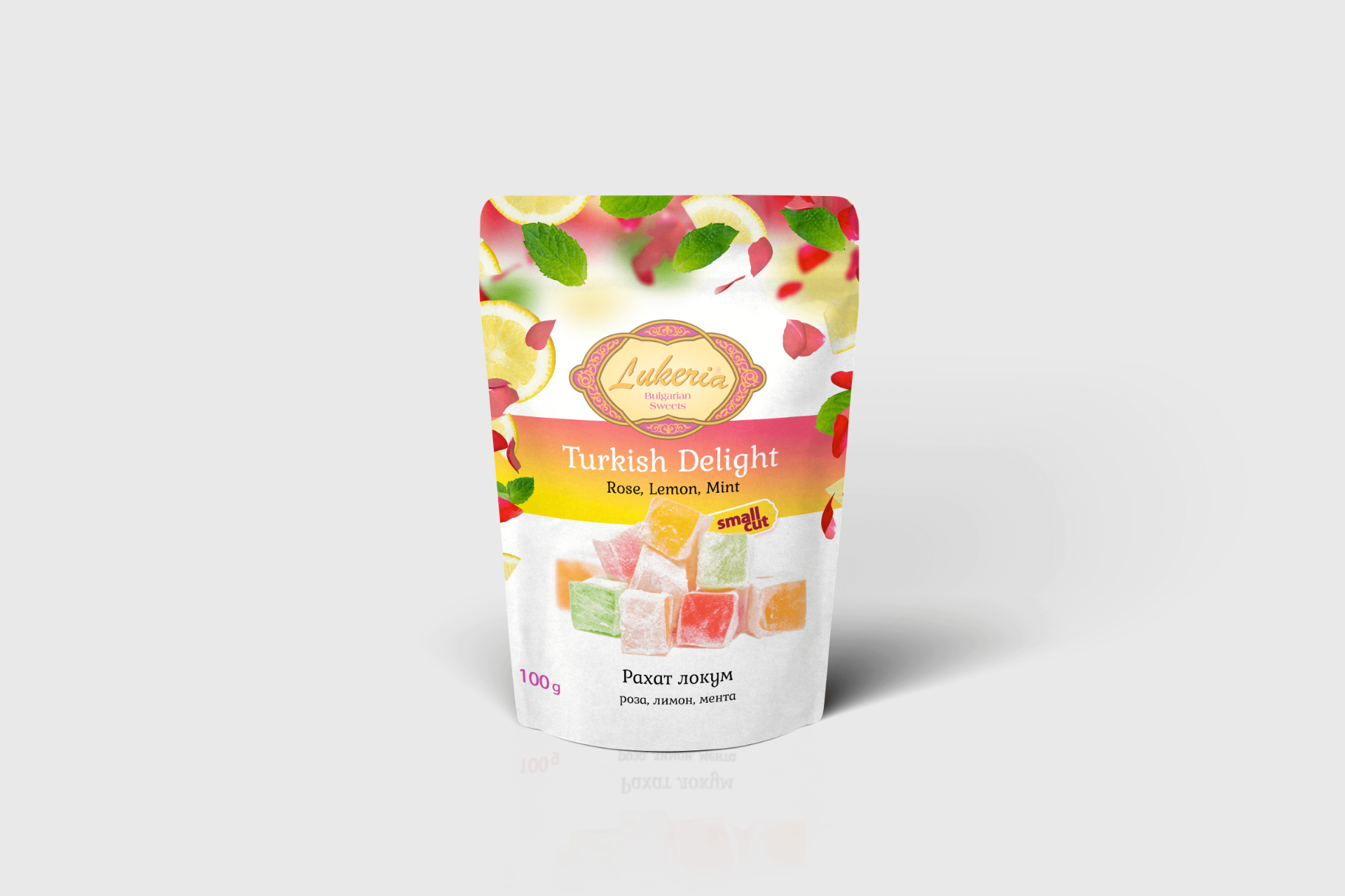 Локум с аромат на роза мента лимон - малки кубчета 100гр