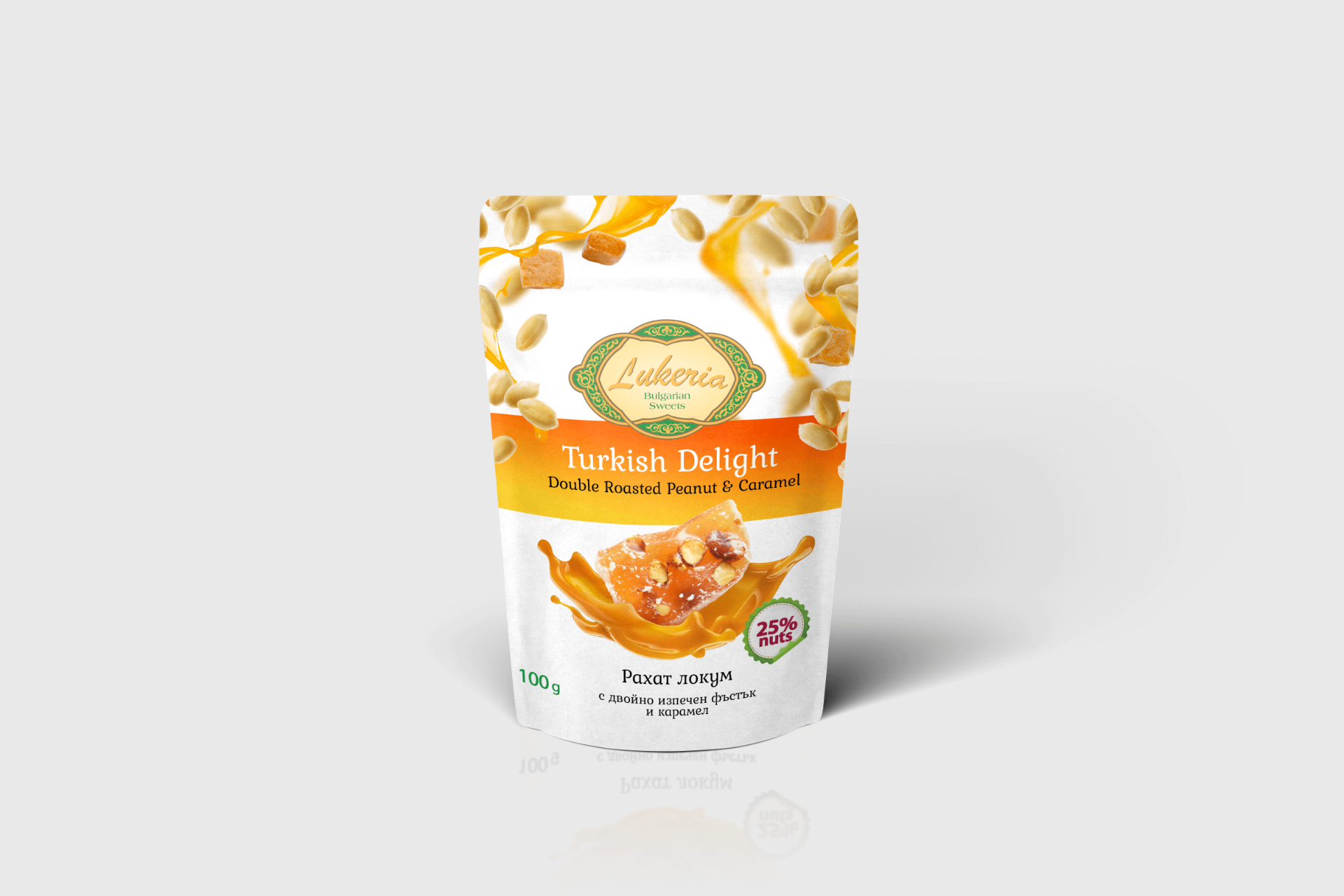 Локум с двойно изпечен фъстък и карамел - малки кубчета 100гр