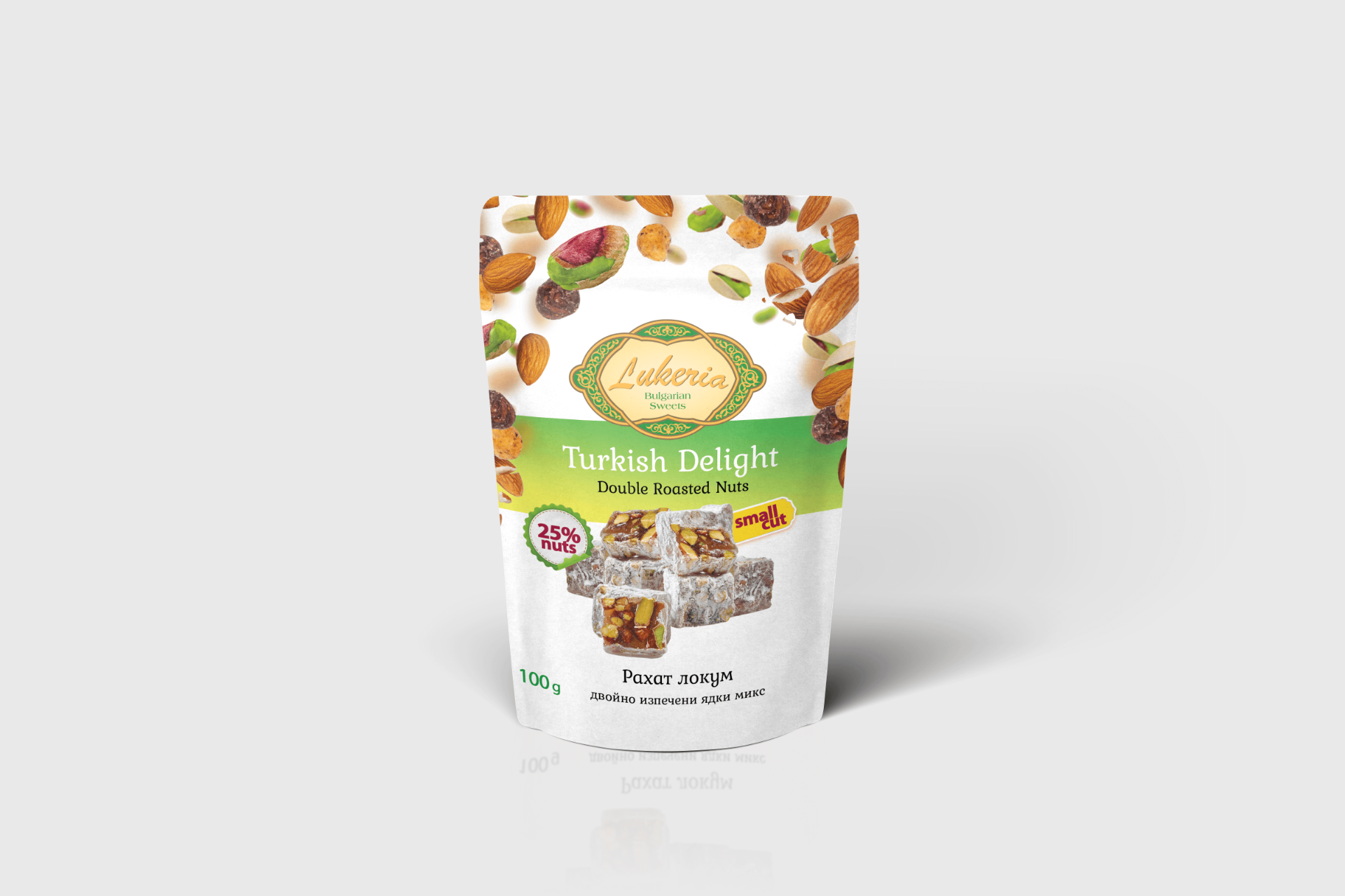 Локум с двойно изпечени ядки микс - малки кубчета 100гр