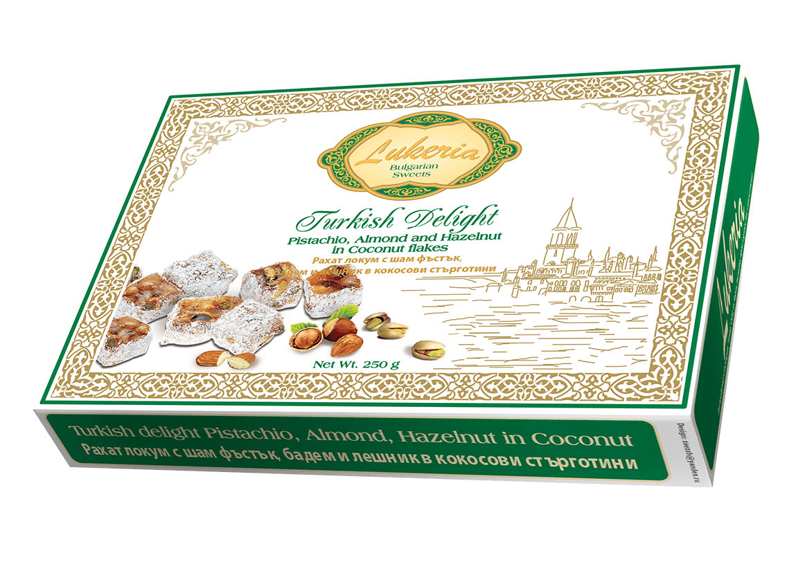 Рахат локум с шам фъстък, бадем и лешник 250гр