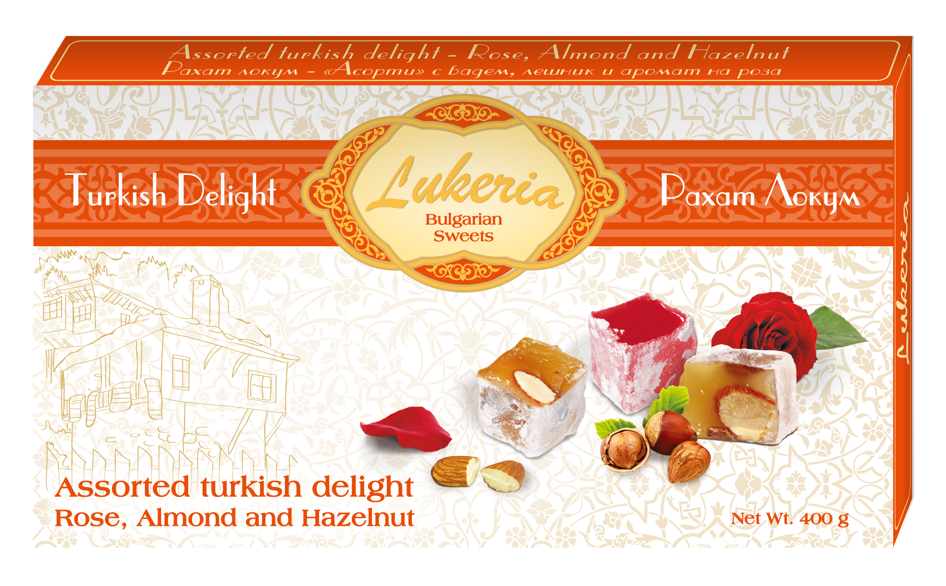 Rahat Turkish delight with rose, hazelnuts and almonds 350g.