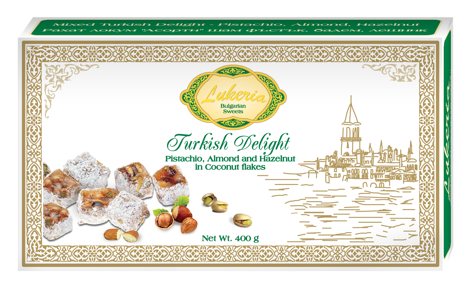 Рахат локум с шам фъстък, бадем и лешник 400гр